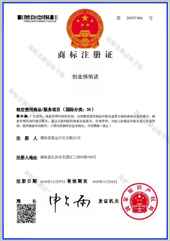 多項(xiàng)專利發(fā)明人王先軍 手機(jī):150-7483-5702 手機(jī):195-7316-0288創(chuàng)業(yè)者的搖籃~創(chuàng)富悄悄話商標(biāo)注冊(cè)成功