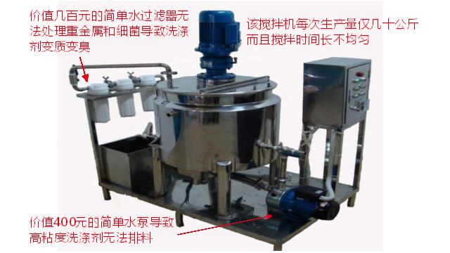五、項(xiàng)目加盟騙局提供的洗潔精設(shè)備、洗衣液設(shè)備,大都是單層不加熱或單層攪拌機(jī)內(nèi)部用發(fā)熱管直接加熱,當(dāng)燒堿、尿素、磺酸等化工原料長期接觸設(shè)備內(nèi)部的發(fā)熱管后就會(huì)腐蝕,腐蝕后的的銹斑首先會(huì)導(dǎo)致洗滌產(chǎn)品和車用尿素重金屬增加及產(chǎn)品外觀顏色渾濁,還會(huì)引起產(chǎn)品中細(xì)菌滋生變質(zhì)變臭,更嚴(yán)重的是攪拌機(jī)內(nèi)部的發(fā)熱管腐蝕后導(dǎo)電引發(fā)人身安全危機(jī);