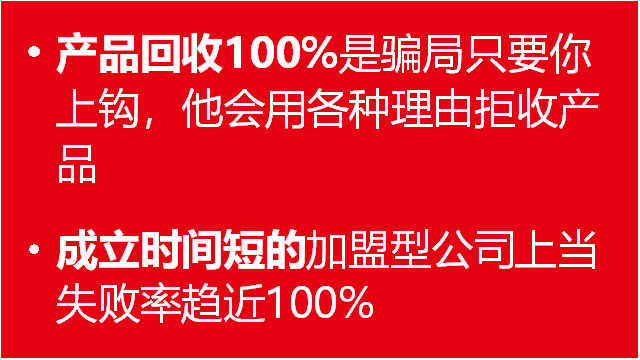 十五、項(xiàng)目加盟騙局一般都會(huì)同時(shí)推出幾個(gè)放馬牛不相及的項(xiàng)目,因?yàn)椴粚R粚?dǎo)致專業(yè)性差;