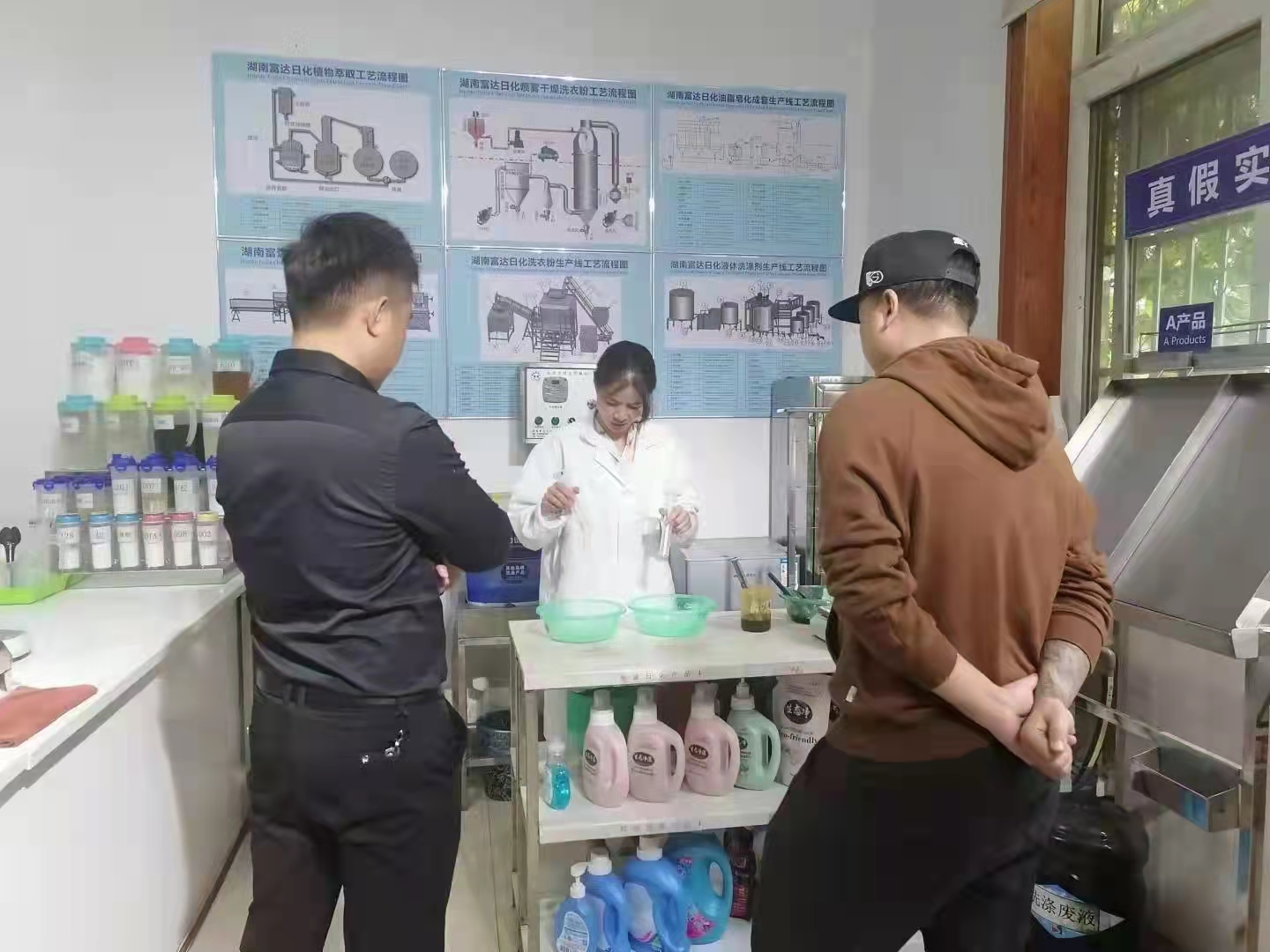 走進富達日化研發(fā)室,你會看到各種頑跡污垢在工程技術研發(fā)人員努力下,呈現(xiàn)給前來考察學習的海內(nèi)外新老用戶的每一種驚奇驚喜。