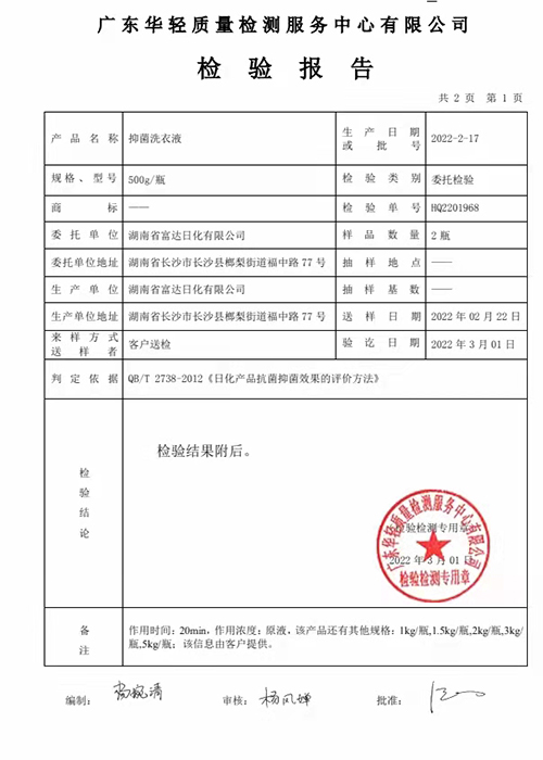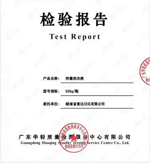 富達(dá)抑菌洗衣液檢測(cè)合格,抑菌率達(dá)到99.99%