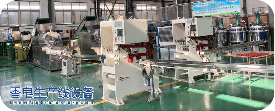 原料攪拌機(jī);三輥研磨機(jī);半成品輸送機(jī);香皂冷凍機(jī);真空出條機(jī);真空泵;切塊機(jī);香皂打印機(jī);成品輸送機(jī) ; 不銹鋼工作臺 |